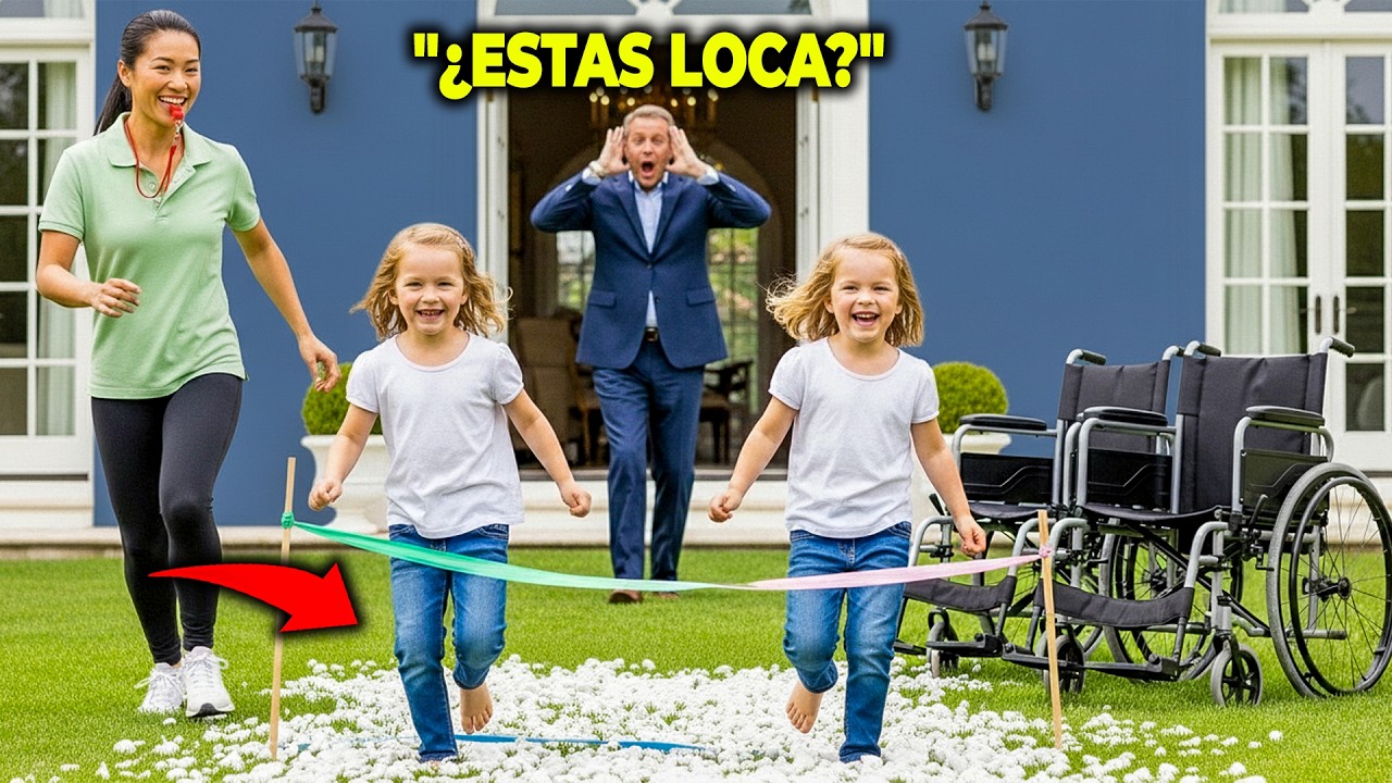 Las gemelas, sorprendidas por el tono de su padre, casi se detuvieron. Pero la niñera levantó una mano y con calma firme les dijo, “Sigan, no miren atrás. Ustedes pueden hacerlo. El padre sintió que el mundo se le venía abajo. Por un instante estuvo a punto de correr y arrancar a sus hijas de allí, pero algo extraño lo detuvo.