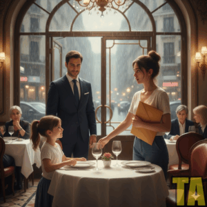 Papá, mira”, dijo señalando discretamente hacia la entrada del restaurante. Aquella señora se ve triste. Adrián siguió la dirección que indicaba su hija y vio a una joven mujer de pie junto a la recepción, claramente incómoda en aquel lugar tan elegante. Llevaba ropa sencilla pero limpia, el cabello recogido en un moño desprolijo como si hubiera salido con prisa, y sostenía un sobremanila contra su pecho como si fuera un escudo protector.