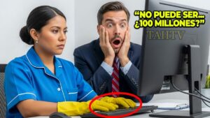 Fue en ese mismo instante cuando la limpiadora, con sus guantes amarillos aún puestos y una mirada serena pero firme, se detuvo frente al monitor encendido, notando algo que nadie más había visto. “Señor, ¿puedo mostrarle algo?”, preguntó sin titubear mientras él la miraba con incredulidad. “¿Tú mostrarme qué?”, respondió el hombre con un dejo de impaciencia, como si se tratara de una interrupción absurda en medio de la tormenta, pero había en sus ojos una chispa de curiosidad que lo traicionaba.