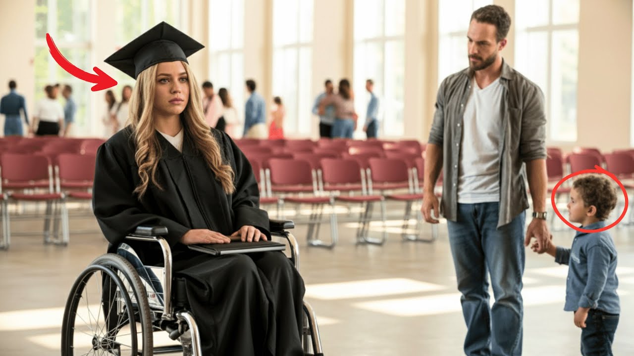 Ella se graduó con honores, sola, en una silla de ruedas, mientras su padre, un magnate poderoso, le dejaba un sobre y se marchaba sin mirarla. Él, un trabajador de mantenimiento, la observó desde lejos hasta que su hijo de 8 años le preguntó por qué nadie la abrazaba. Lo que pasó después no estaba planeado.