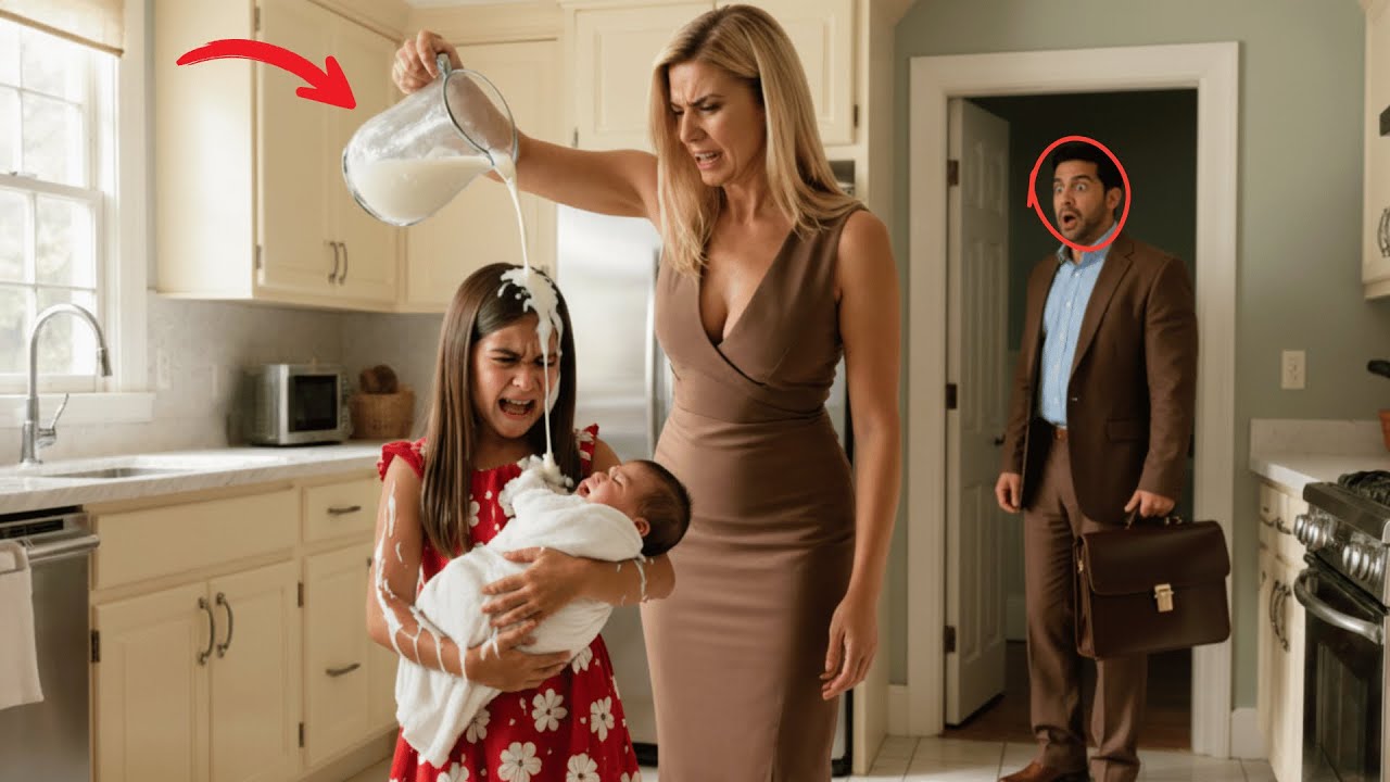Con los dedos hundiéndose en su piel. vio a su hija, su pequeña princesa, con el rostro pálido y los ojos llenos de un miedo tan profundo que le robó el aliento. Sofía no lloraba, solo miraba fijamente a su madrastra, aguantando el dolor. “Vas a limpiar esto con la lengua si es necesario”, dijo Valeria, empujándola hacia el suelo.