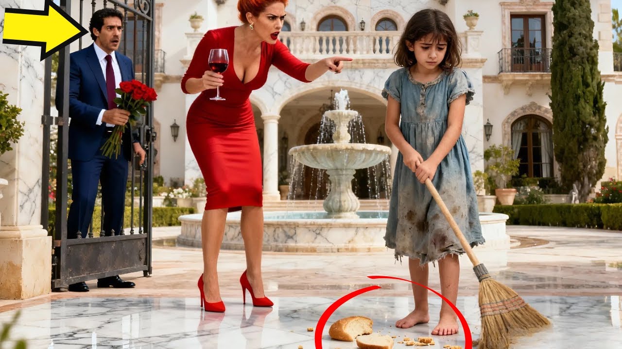 With a sharp slam, she threw the plate to the floor. The sound of the glass shattered into the silence. The clock struck 9. The girl trembled. Camila slowly raised her hand, her fingers tense. Suddenly, a deep voice broke the air. Camila, what are you doing with my daughter? The door opened, and the millionaire father, Esteban, appeared, covered in dust from his travels, his face contorted with anger and horror.