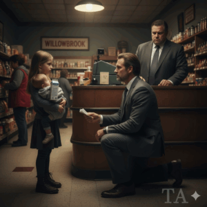 El pequeño supermercado a las afueras de Willowbrook solía estar tranquilo al anochecer. Sin embargo, hoy la quietud tenía una intensidad inusual. En el centro de este silencio se encontraba Kayla, de nueve años, abrazando con fuerza a su hermanito en un brazo y aferrando un cartón de leche en el otro.