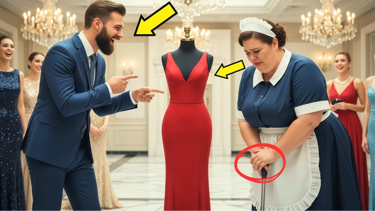 Me caso contigo si entras en este vestido rojo. Me caso contigo si entras en este vestido rojo. La voz de Julián Aranda cortó el silencio del salón como un látigo. Las risas estallaron entre los invitados, mientras Maribel Torres, con su uniforme de limpieza y el rostro encendido, bajaba la mirada frente al lujoso vestido que todos admiraban.