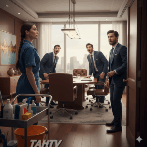 Fue en ese preciso instante, mientras Esteban paseaba por la oficina como una fiera enjaulada, que ocurrió lo imposible. Una mujer empujando un carrito de limpieza se detuvo frente a la puerta de la sala. Era alguien a quien nadie en ese piso solía mirar más de 2 segundos. Una empleada más, invisible como tantas otras. Llevaba uniforme azul, cabello recogido en una trenza apretada y ojos que parecían mirar siempre al suelo. Pero ese día alzó la mirada y habló.