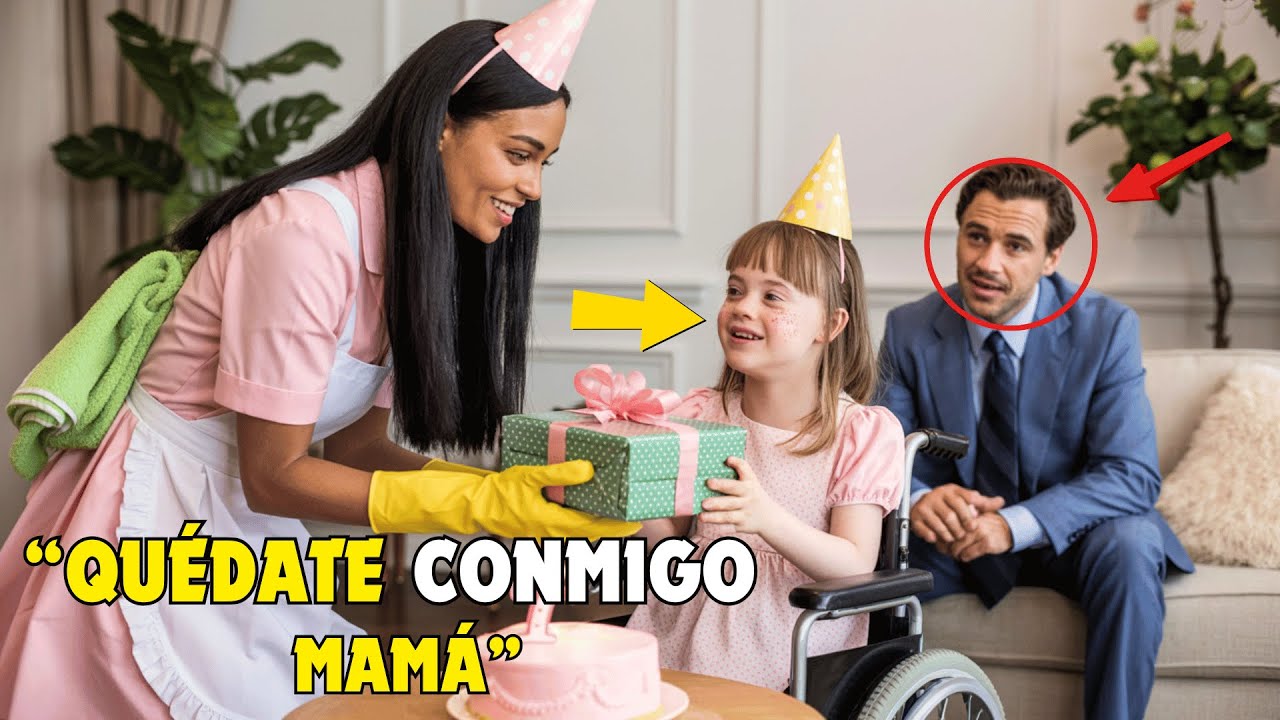 En el centro de todo, como una frágil estatuilla, en una vitrina demasiado grande, estaba Valeria, sentada en su silla de ruedas, vestida con un traje de princesa de tul rosa que parecía pesar más que ella. Sus delgadas piernas, inmóviles desde el accidente, estaban cubiertas por una manta de cachemira. El accidente que le había arrebatado la capacidad de caminar también le había robado a su madre Teresa y con ella su voz y su risa.