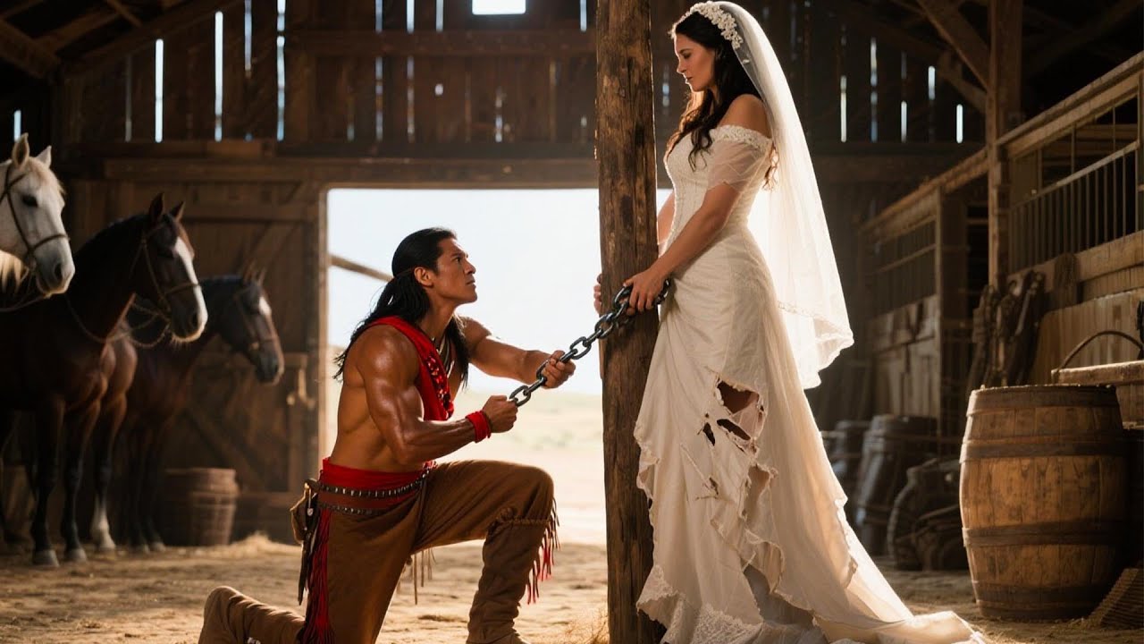 No puedo casarme con él. Mátame primero”, le susurró la novia gigante al jefe Apache. El látigo silvó por el aire como una serpiente furiosa antes de estrellarse contra la espalda desnuda de Briana con un chasquido que resonó por todo el establo como el eco de un trueno distante.