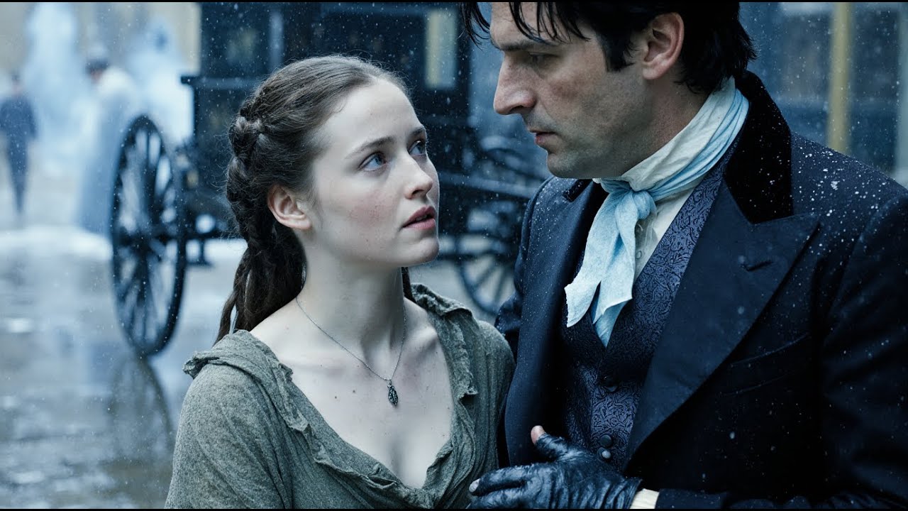 Elenor Nell Hastings avanzaba con pasos cautelosos. su delgado cuerpo envuelto en un abrigo gastado que poco hacía para protegerla del frío cortante. El viento le azotaba el rostro con gotas heladas, enredando mechones de su cabello oscuro alrededor de sus mejillas. Su vestido, otrora digno de una dama, era ahora poco más que un trapo remendado y sucio, un testimonio mudo de la ruina que había caído sobre su familia.
