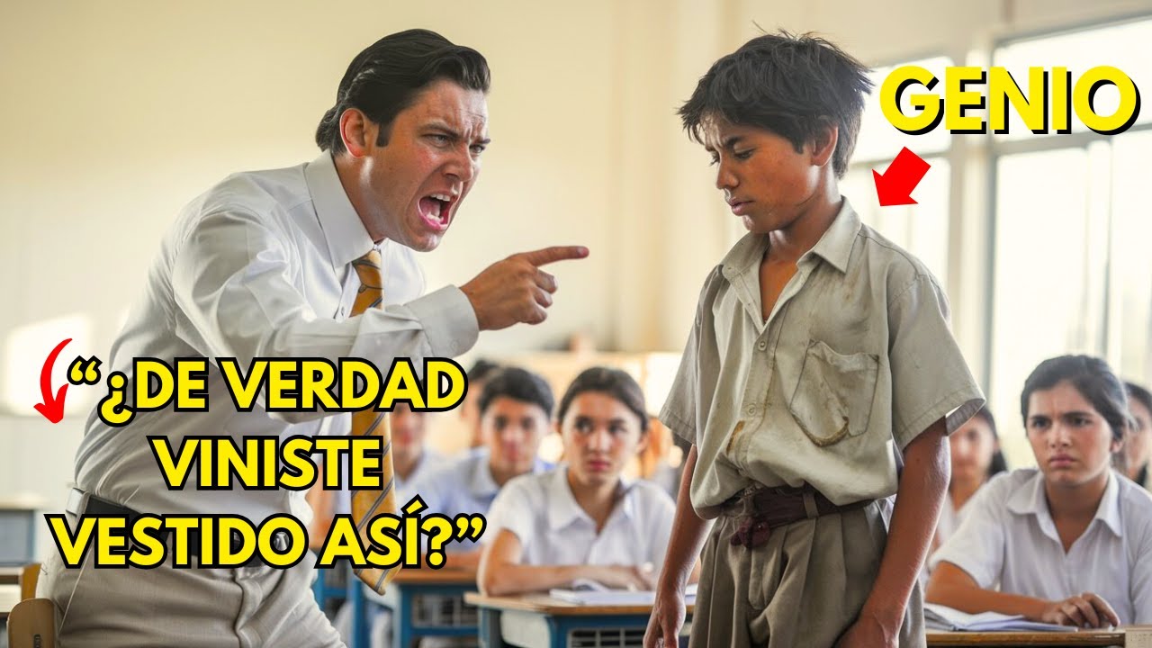 “¿Y tú crees que puedes sentarte en una escuela como esta vestido así? ¿Vienes de la granja directo al aula?” Las risas comenzaron a brotar entre algunos compañeros. Elías bajó la mirada. ¿De verdad viniste vestido así?”, repitió Ramírez con burla, haciendo énfasis en cada palabra. Los murmullos crecieron.