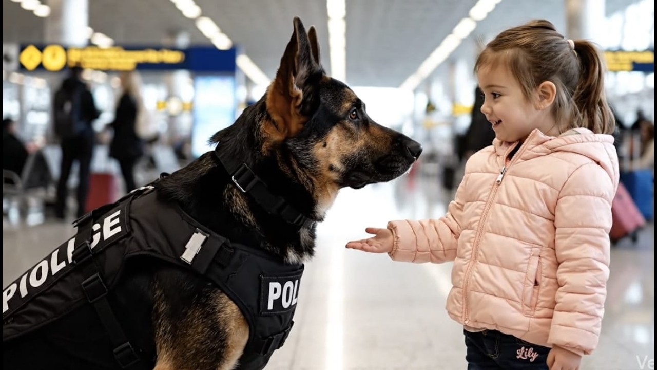 Y cuando la pequeña se inclinó un poco más apoyando su manita en el borde de su chaleco, él ajustó su cuerpo lo justo para hacer espacio. Cuidadoso, controlado, pero inconfundiblemente protector. Y fue entonces cuando el oficial al otro lado de la terminal notó el cambio, porque este no era un perro simplemente tolerando atención, era un K9, eligiendo activamente proteger a alguien que no formaba parte de su misión.