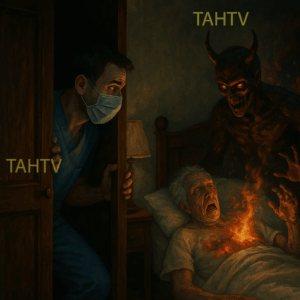Daniel sintió un escalofrío subirle por la espalda y contuvo la respiración. Fue entonces cuando lo vio, una sombra oscura comenzó a formarse junto a la cama. No tenía un rostro definido, pero sí una figura humana que parecía hecha de humo. Se inclinó sobre Ernesto y, en cuanto lo tocó, la piel del anciano se enrojeció como si ardiera bajo un fuego invisible. Daniel no soportó más.