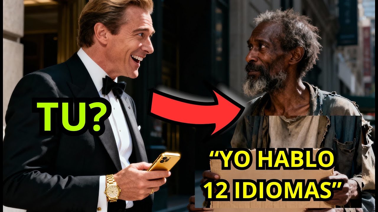 Yo hablo 12 idiomas”, dijo el mendigo. El millonario se ríe, pero queda en Soc. En las elegantes calles de Manhattan, donde los rascacielos tocan las nubes y el dinero fluye como agua, Marcus Wellington caminaba con su traje de Armani de $3,000. Sus zapatos italianos resonaban con autoridad sobre el pavimento mientras hablaba por su teléfono de oro, cerrando un negocio de 50 millones de dólares.