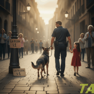 Ahora, frente a él, el oficial sentía que su pecho iba a estallar. Este no era un perro a la venta, era el compañero que alguna vez arriesgó todo por él. Un héroe reducido a un dólar. La niña no sabía nada de esto. No entendía el peso del silencio de su padre. Solo veía a un animal solitario que necesitaba amor.